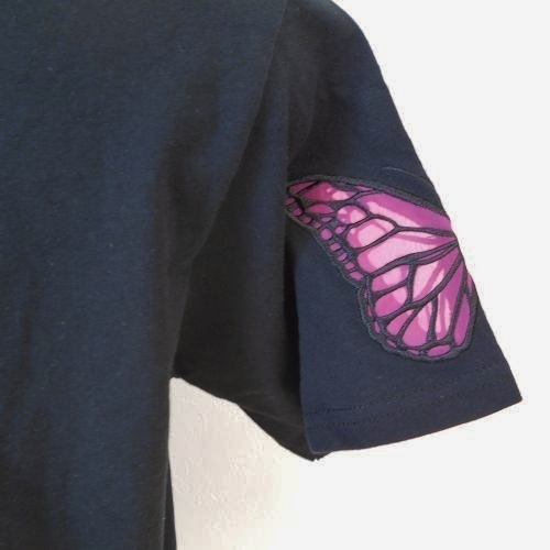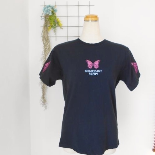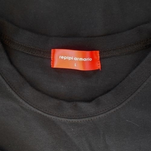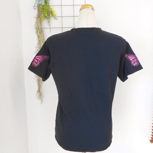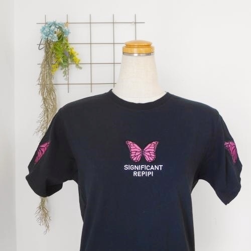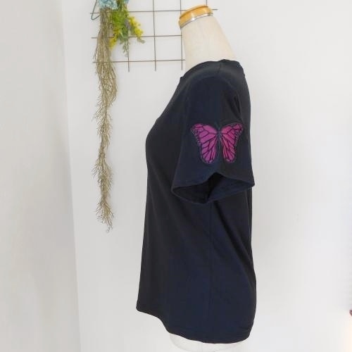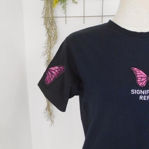 レピピアルマリオ repipi armario L 半袖 Tシャツ 蝶 バタフライ 刺繍 ワッペン お袖 オーガンジー 黒 ブラック パープル トップス