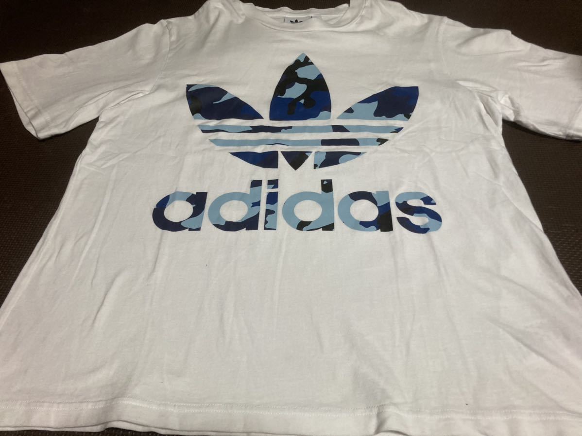 美品adidas濃紺、ロゴ水色、濃紺、青、黒、半袖ストレッチトップス