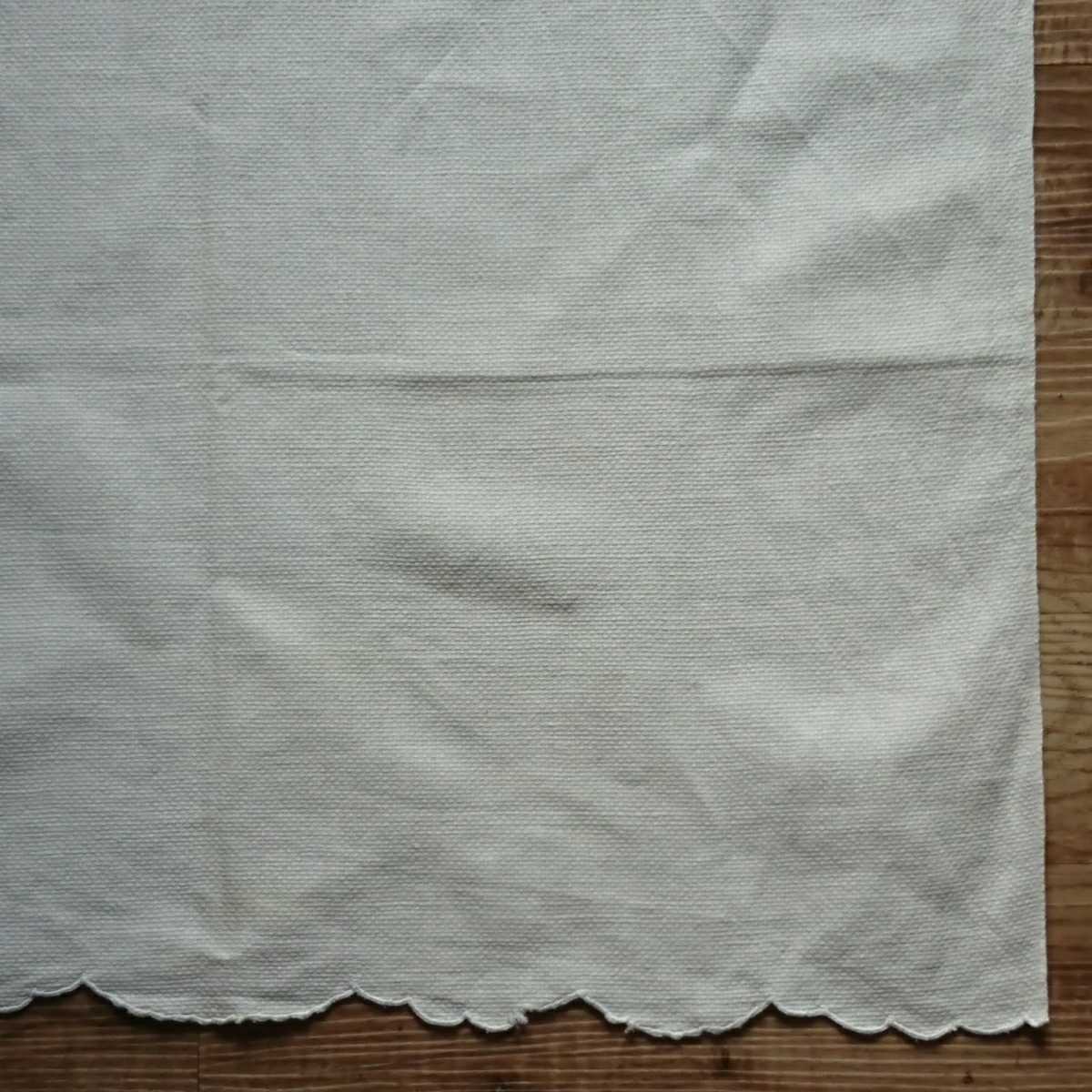 一口にアンティークリネンと言っても、見た目や触った感じはさまざまです。このお品は、経糸と緯糸を均等に交互に織る平織ではなく、交互に編み込まない綾織か朱子織という方法で織られているように見えます。そのため、適度な厚みと柔らかでさらりとした肌触りがします。