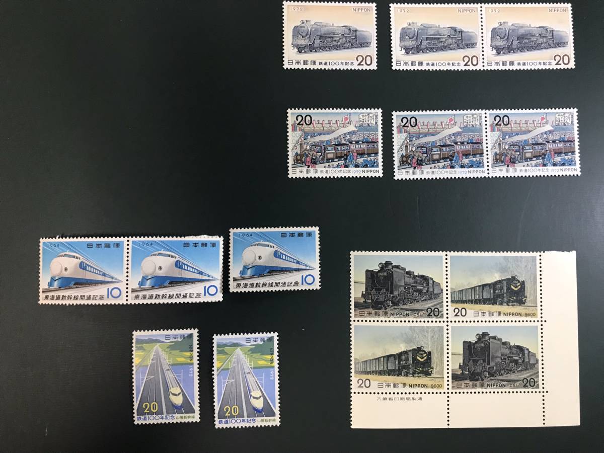 コレクションしてた切手の中から、電車の切手を集めてみました。 1964年発行 東海道新幹線開通 3枚 1972年発行 鉄道100年 鉄道開業図 3枚 1972年発行 鉄道100年 C62型機関車3枚 1972年発行 鉄道100年 山陽新幹線 2枚 1975年発行 SLシリーズ第4集 9600形式、C51形式 2種 4枚組 *パラフィン紙のアルバムで保管していました。経年の割には、良い状態だと思います。 | ||