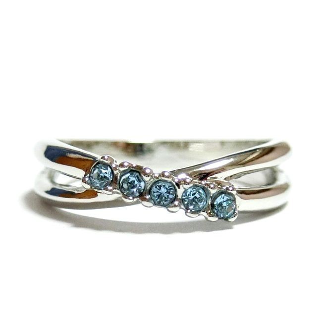 15号 クロスライン スワロフスキークリスタル アクアマリン シルバー リング 指輪 ユニセックス 男女兼用 レディース メンズ