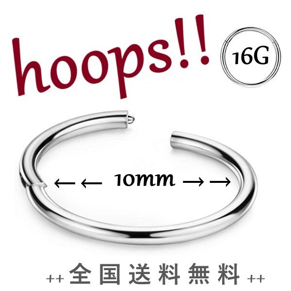 ☆送料無料☆【 16G フープ10㎜ 】フープピアス 定番 フラットフープ サージカルステンレス シルバー ボディーピアス