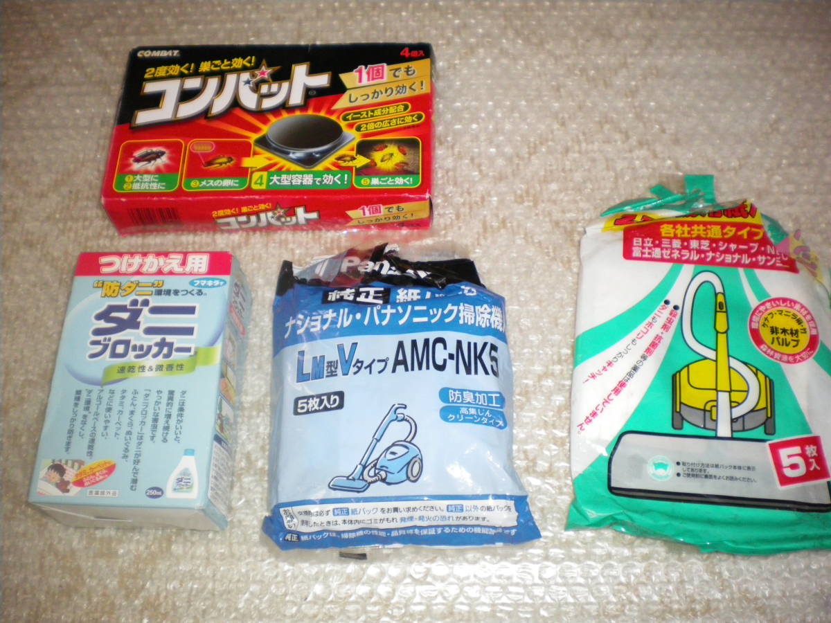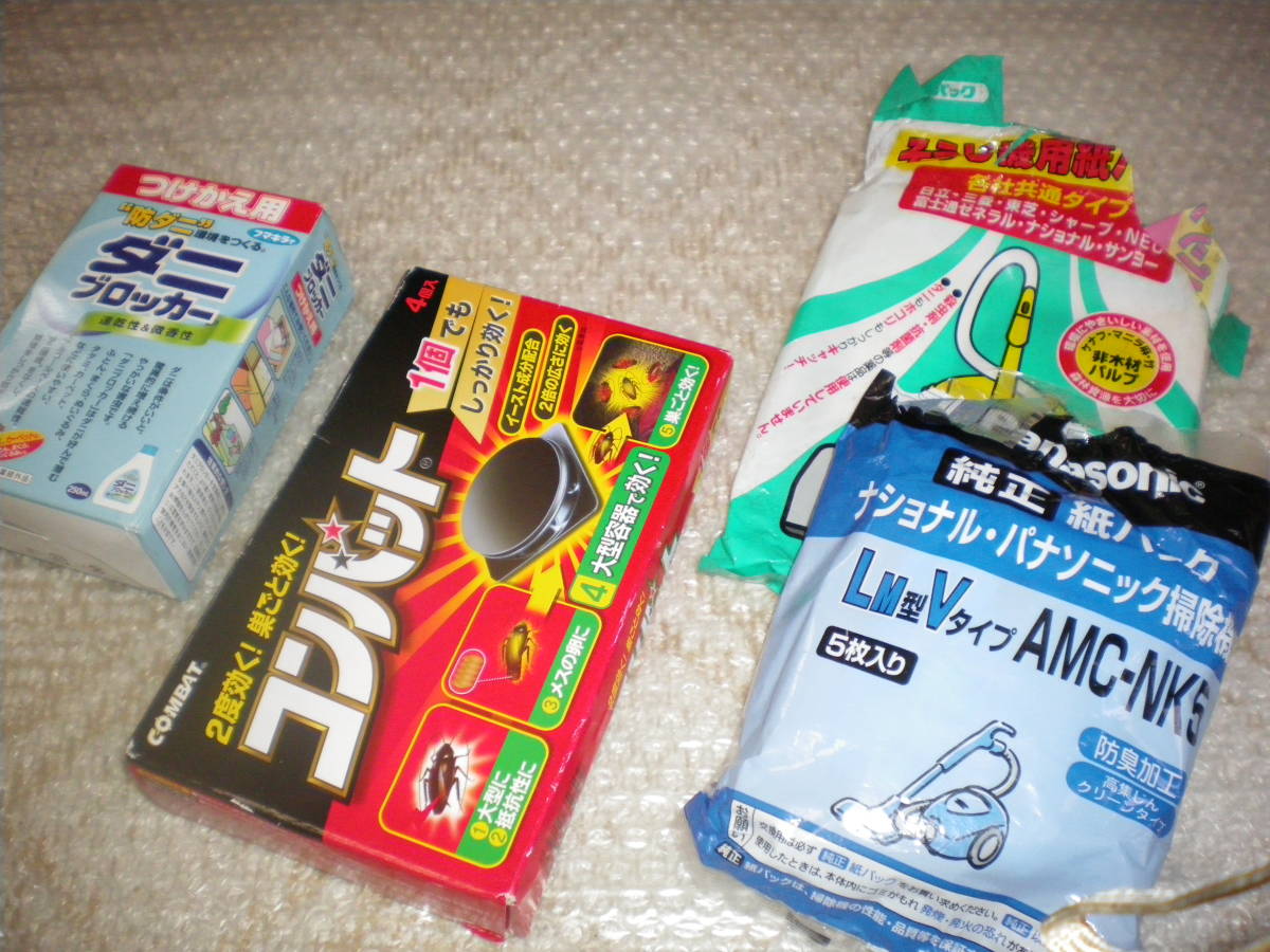 ※未使用:フマキラーダニブロッカー・金鳥コンバット、防ダニ・防虫に、おまけに掃除機の紙パック付きです。