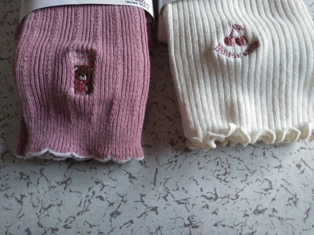 トップバリュ 綿混素材 ガールズレギンス 2枚 105サイズ(ピンク系クマ&白地サクランボ)