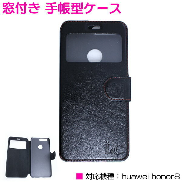 huaweihonor8ケース huawei honor8カバー手帳型 窓付き ブラック/黒 【ファーウェイ 手帳型ケース フルカバー 】