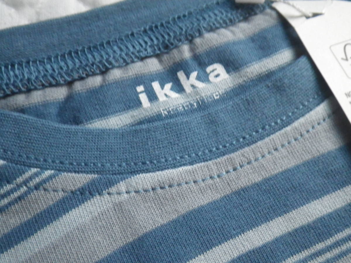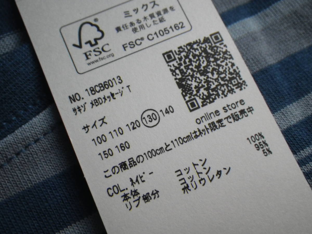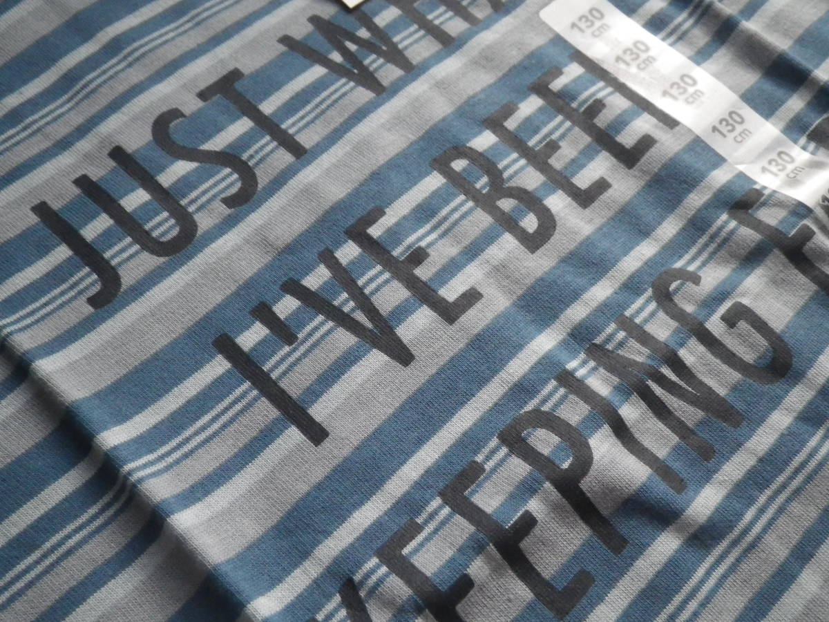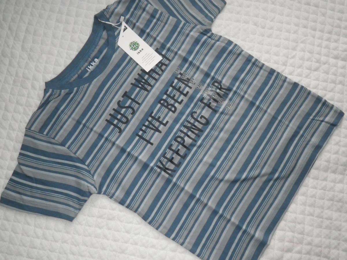 1【新品】ikka KIDS★130cm ¥1296★先染め メッセージ 半袖Tシャツ ネイビー