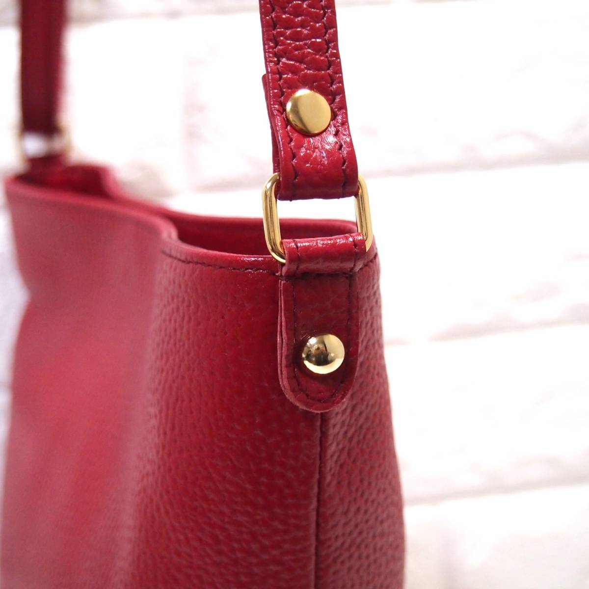 ●ショルダーの付け根には半玉状のゴールドの飾り金具をあしらい、スタイルリッシュに仕上げました。