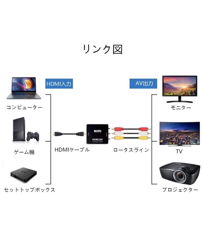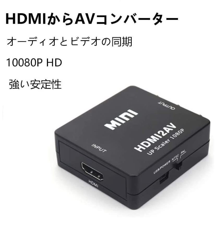 HDMI to AV:本機はデジタルであるフルハイビジョンHDMI信号をアナログであるコンポジット信号に変換し、映像表示、音声(L/R)出力するコンバーターです。HDMI入力端子の無い古いテレビにHDMI機器からの映像を写すことができます。※逆方向(AV to HDMI)にはご使用できません。