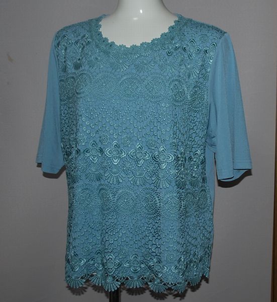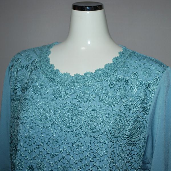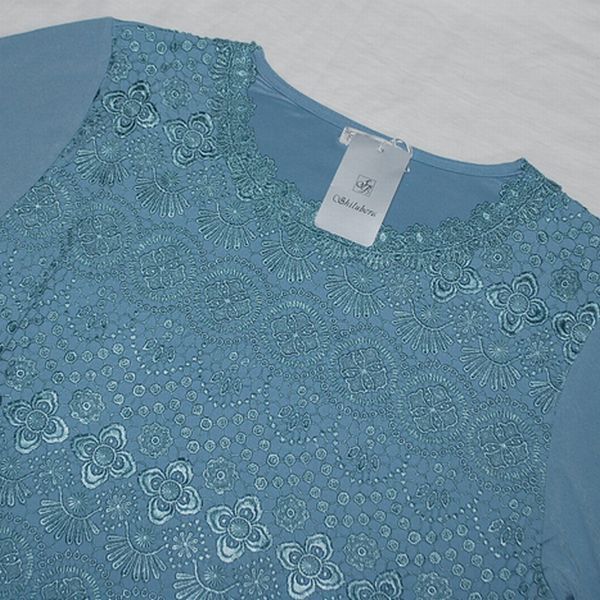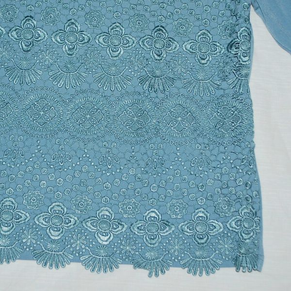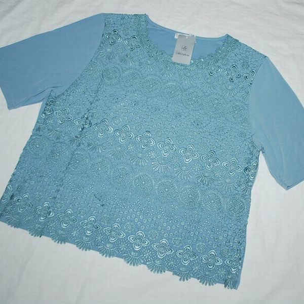 Last 4L 華やかケミカル刺繍レース半袖Tシャツ ブルーグリーン 大きいサイズ