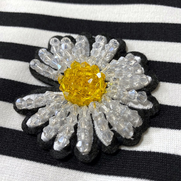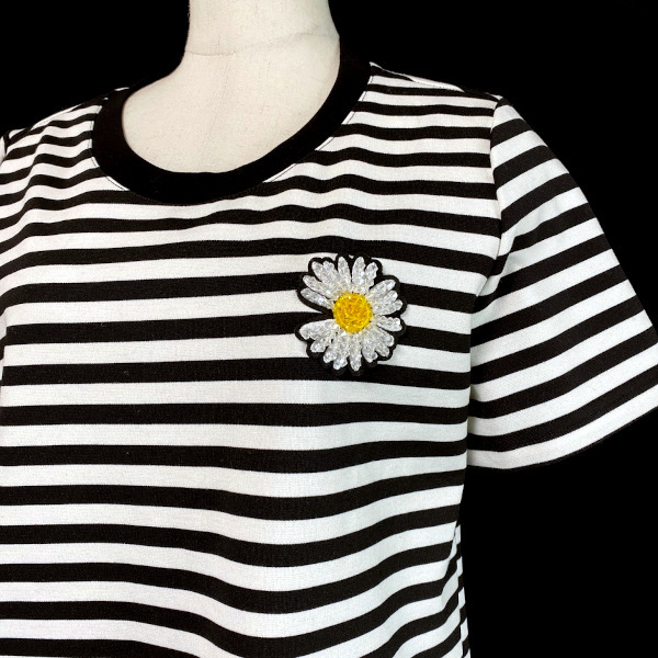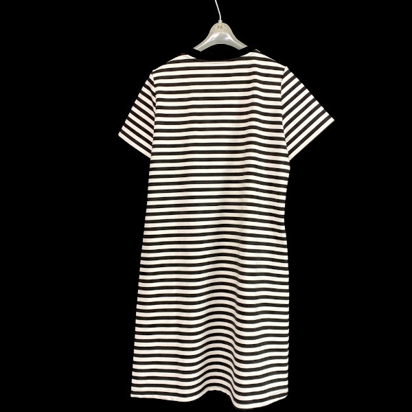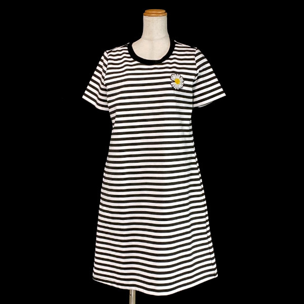 ご覧いただき、ありがとうございます♪ お花のワッペンのついたワンピースです。ソロバンビーズがキラキラして、とてもかわいいです。 伸縮性のある素材で裏地は無く、両サイドにポケットがついています。 未使用、自宅保管品です。タグなどはありません。 【サイズ】 肩幅 35㎝ 袖丈 20㎝ 身幅 49㎝ 着丈 93㎝ | ||