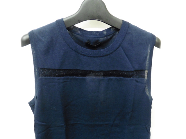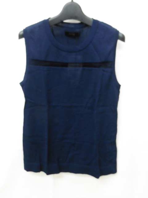 【KCM】mod-159■新品未使用■【modify/モディファイ】 ラメエアリーラインノースリーブニット サイズ40 ネイビー レディース