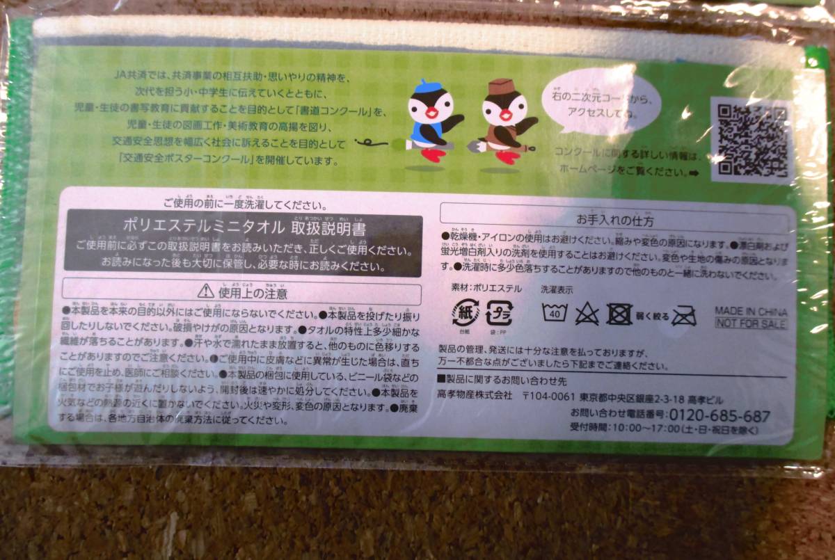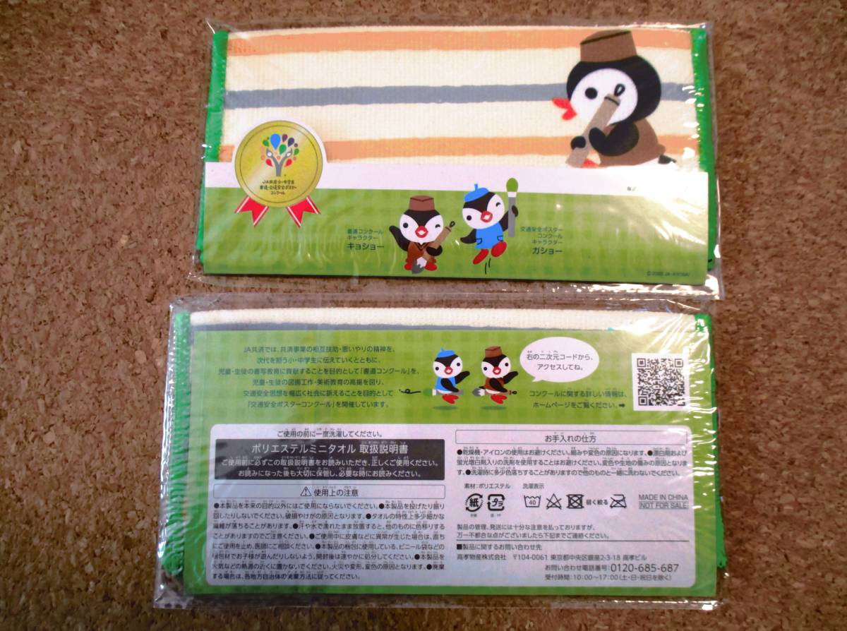 新品 非売品 JA共済 キョショー・ガショー ポリエステルミニタオル 2枚セット ハンドタオル