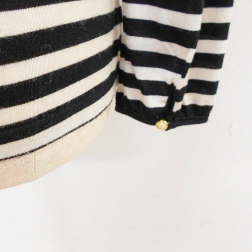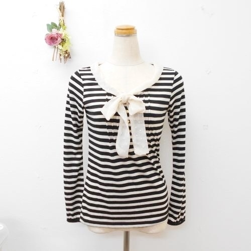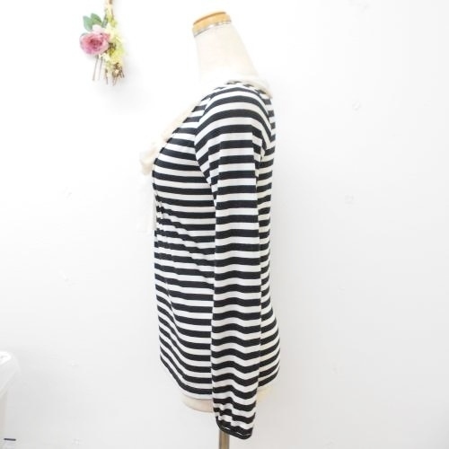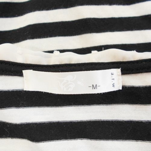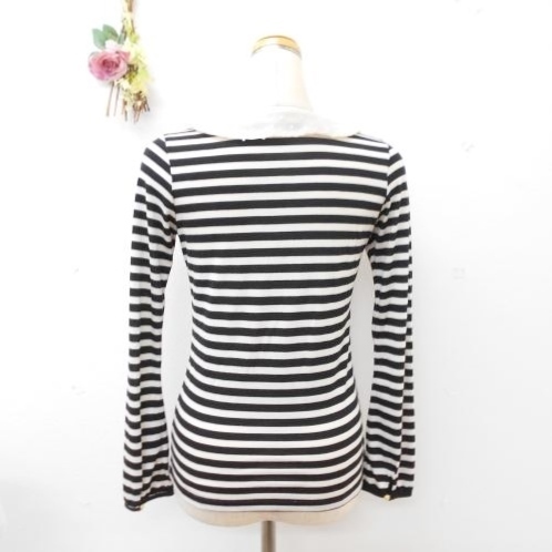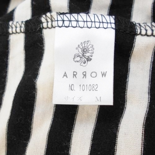 アロー ARROW レディース M 長袖 Tシャツ ブラウス ボーダー 白 黒 衿 ベージュ トップス