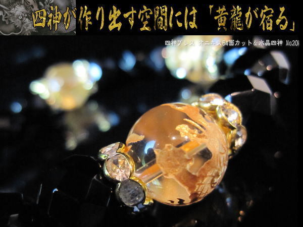 天然石 パワーストーン ブレスレット 64面カット オニキス 水晶 四神 パワーブレス 風水 運気上昇 黄龍 四神獣 No20
