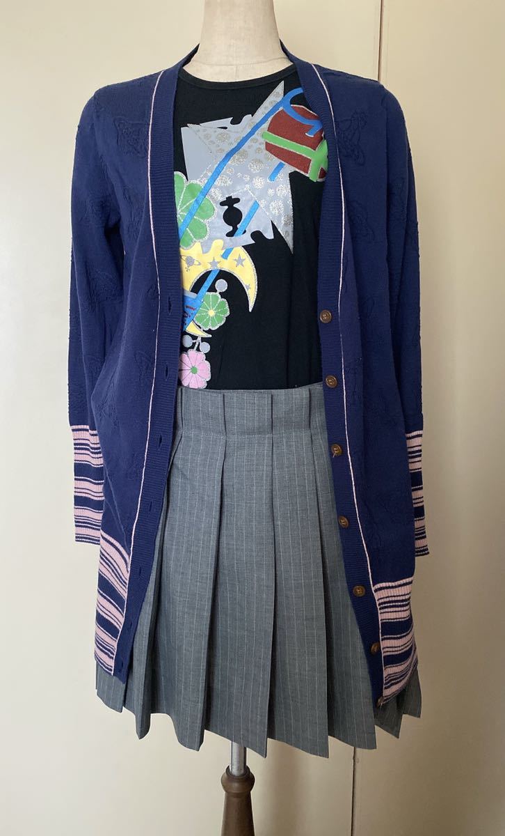 ヴィヴィアン・ウエストウッド(Vivienne Westwood)オーブ模様ロングカーディガン(ピンク×ネイビー)です。