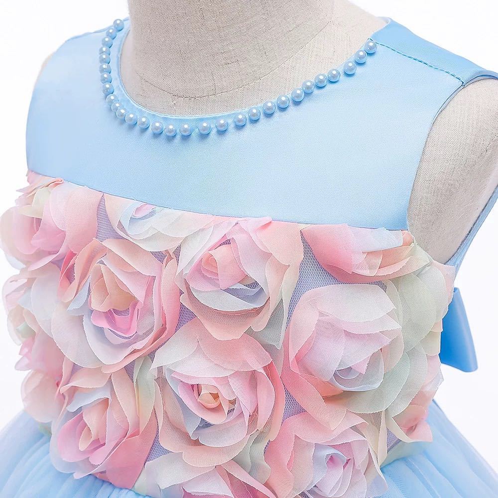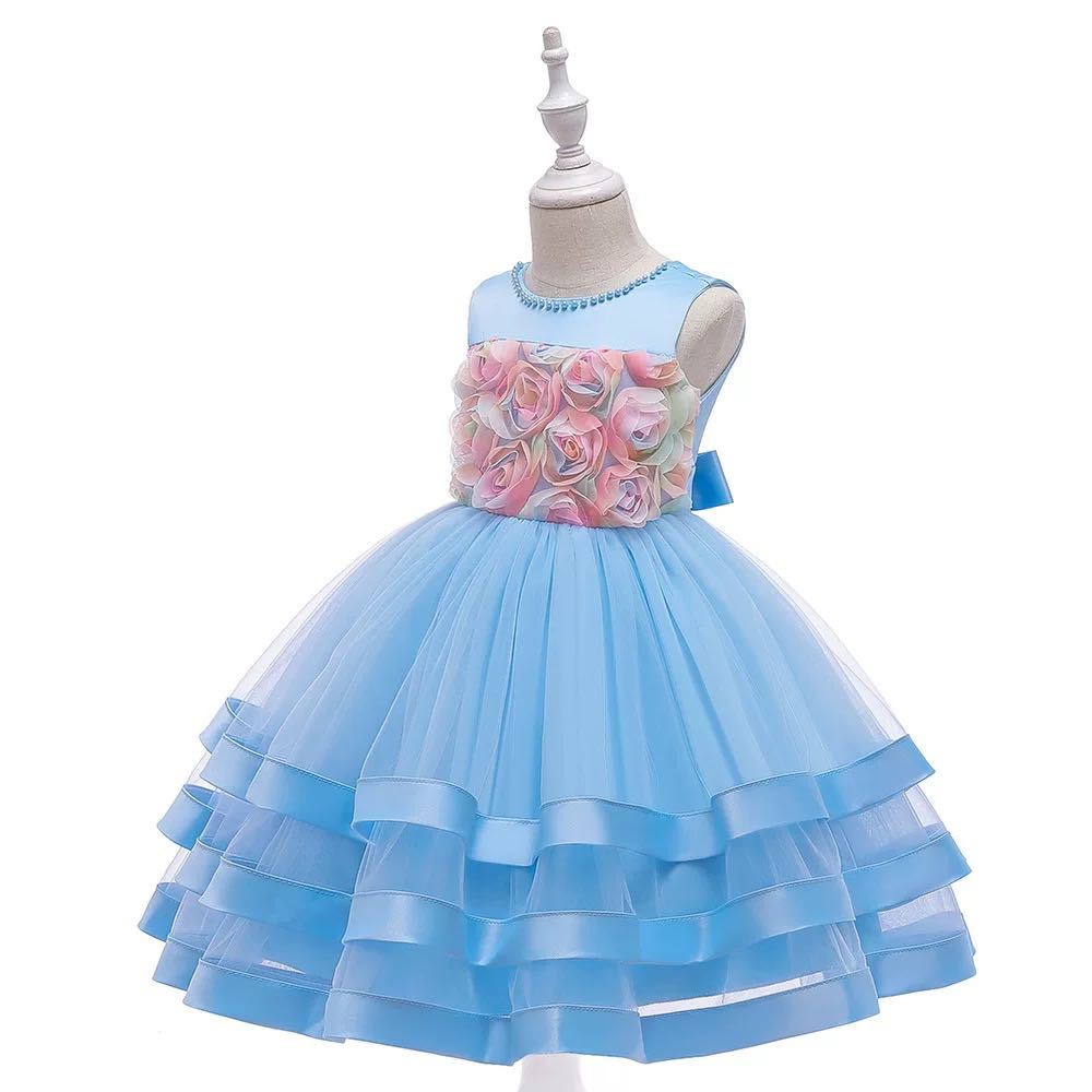 流行カラーのブルーキッズフォーマルドレスです。