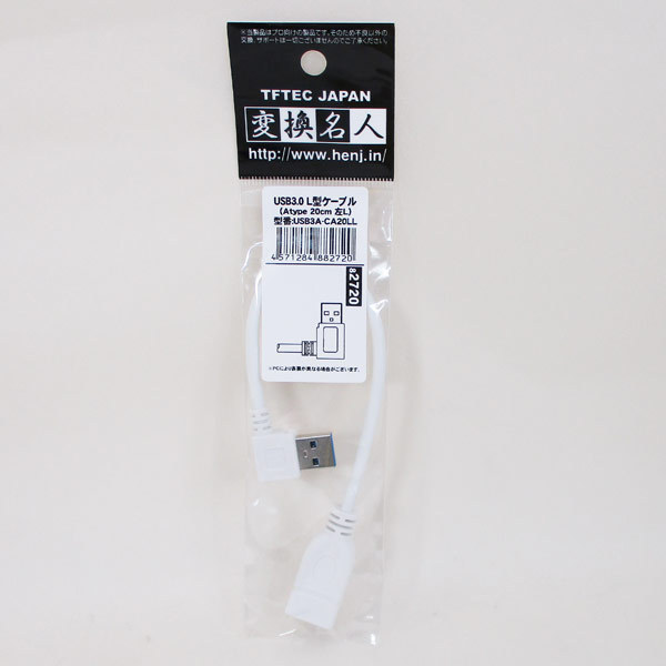 送料無料メール便 USB3.0 L型ケーブル 延長 20cm(左向き変更L)Atype USB3A-CA20LL 4571284882720 変換名人
