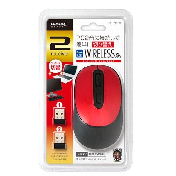 ワイヤレスマウス レシーバー 2個タイプ 無線 2.4GHz LED HDM-7146RD ハイディスク/0182