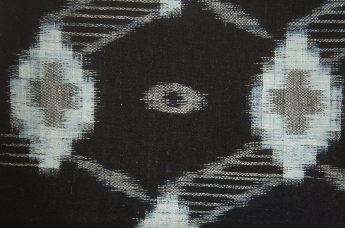 商品名木綿濃藍色地絣模様ハギレ[E13648]