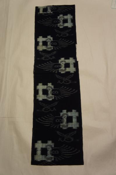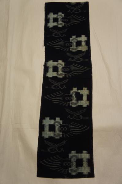 商品名木綿濃藍色絵絣模様タペストリーハギレ材料用[E9358]