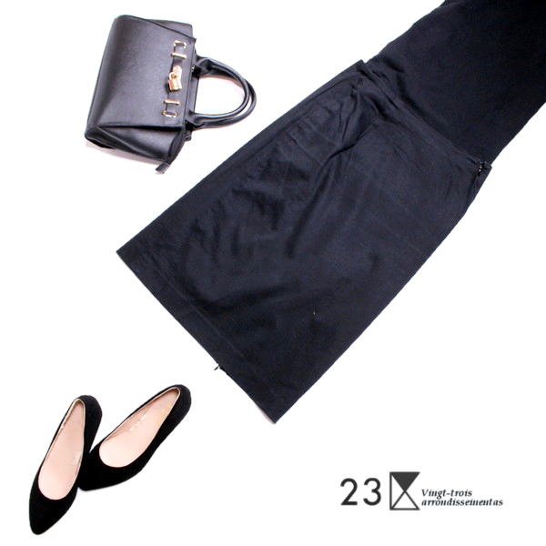 23区 株) オンワード樫山 ■ 大人 シンプル ストレッチ◎ ハリ膝下丈 Aライン コットン スカート 38 ブラック 黒