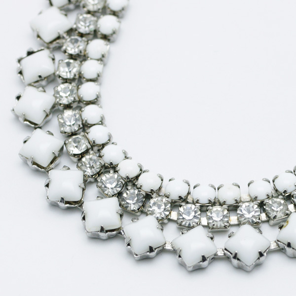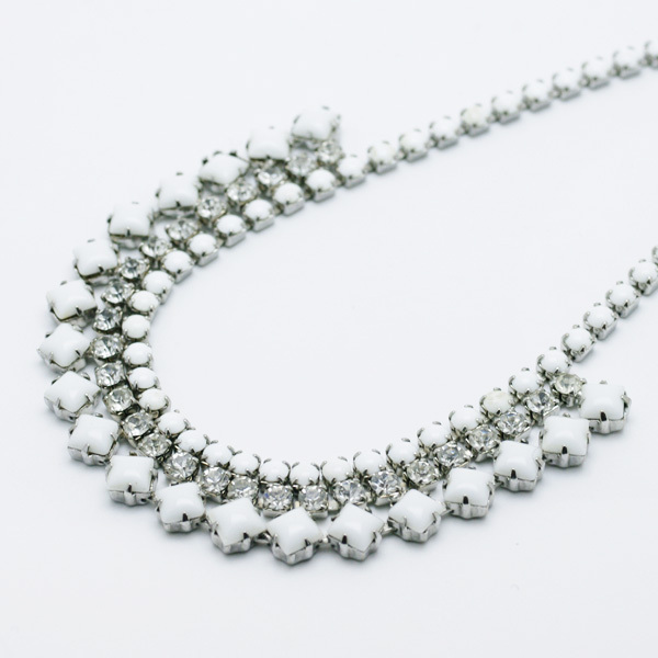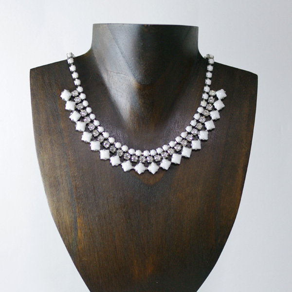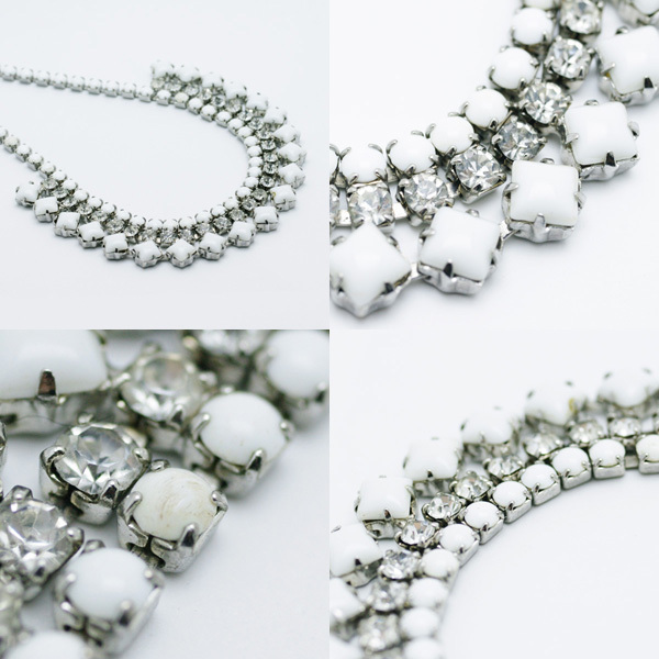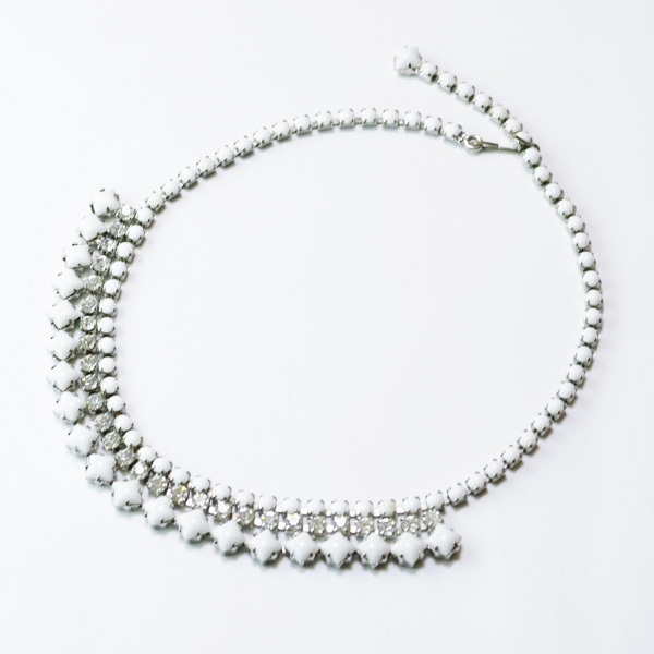 ヴィンテージ ホワイト×クリアラインストーン ネックレス