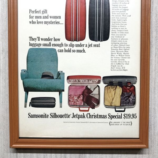■即決◆1965年(昭和40年) Samsonite サムソナイト スーツケース【B4-5222】アメリカ ビンテージ雑誌広告【B4額装品】当時本物広告★同梱可