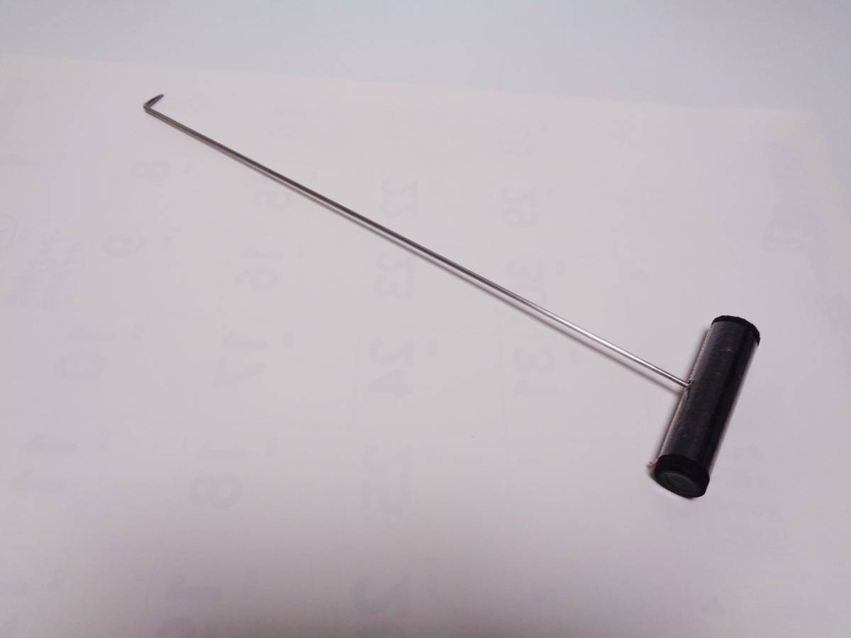 (コアを折り、コアガラをスピーディに引き出せる道具です又コアにかみ込んで残った鉄筋を取るのにも使用しています。グリップは手に沿って握りやすく、鉄芯も大変堅牢で曲りにも強い鋼材です。フエンス用の下向き削孔コアガラの取り出しも大変スピーディに行えます。)