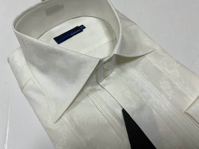 【長137】NWL631-01■Mサイズ■白系■News elegance 綿100% 長袖ドレスシャツ 日本製 花柄