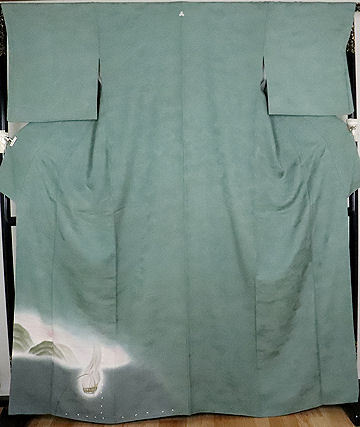 | 友禅 色留袖・訪問着 袷 丹後縮緬地 緑まだら地 手書き友禅遠山にかがり火 174 広襟 一つ紋 | |