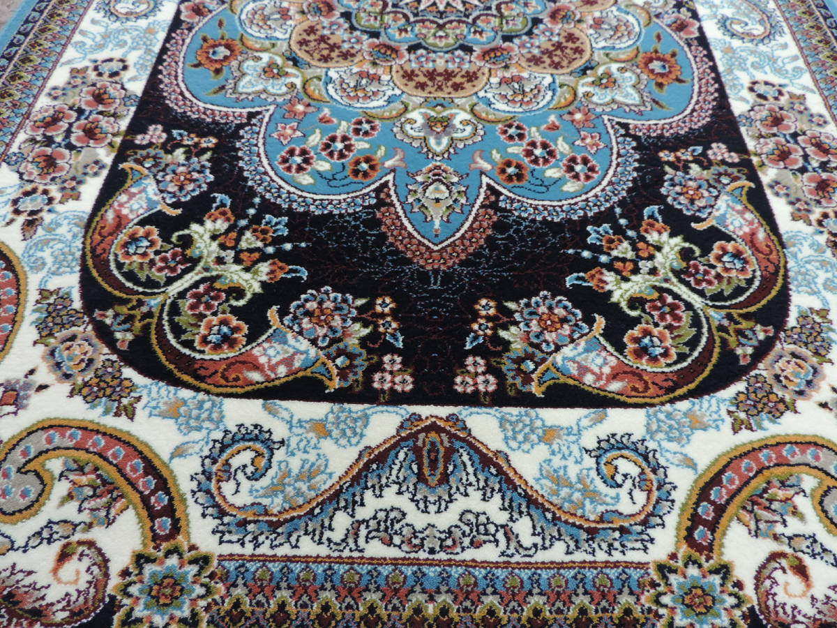 伝統の手織りペルシャ絨毯をしのぐほどの高品質な絨毯です。 ペルシャ絨毯の本場、イラン国内の機械織りで作られたペルシャカーペットのデザインは、完全に手織りペルシャ絨毯と同じですので、他国の機械織りカーペットとは違う豪華さと、優雅さがあります。 他国の機械織り絨毯と比べてもとても丈夫で、毛玉もできず使いやすい絨毯です。 気軽に高級なペルシャ絨毯の柄を楽しめます。 他のサイズと色柄も豊富。すべて違う柄で、他にはないオリジナルデザインです。 手触りはとても柔らかく光沢感のある絨毯です。柄も非常に綺麗で高級感あふれる絨毯です。 ペルシャ絨毯・キリム・ギャッベ専門店ジャハンの絨毯は直輸入ですので、良い品を安価で提供できます。 |