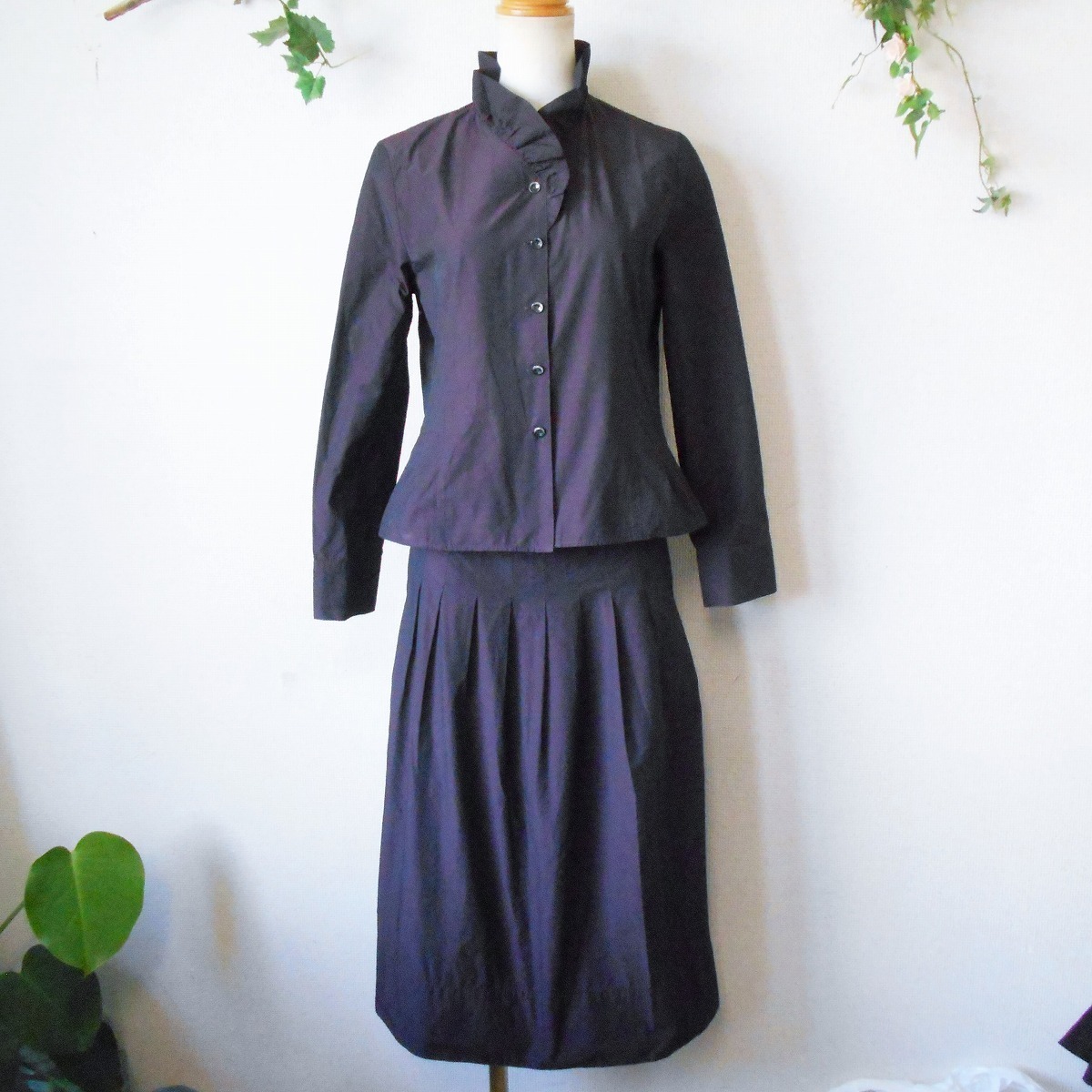 【ポイント】ジャンニロジュディチェの上下セットアップになります。お色は濃いパープル系で春や秋を中心に着ていただけるお品です。