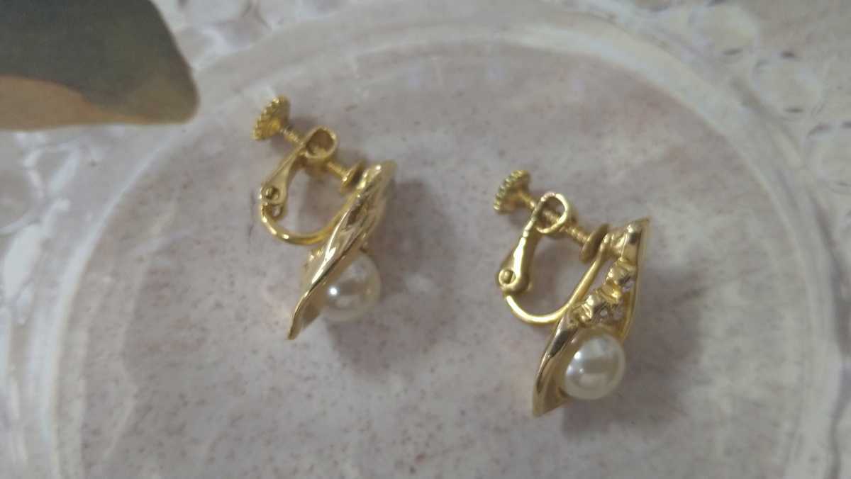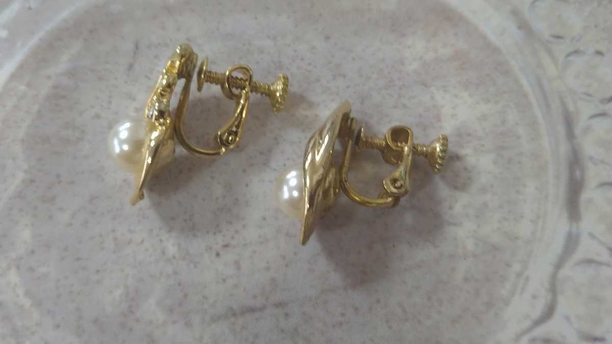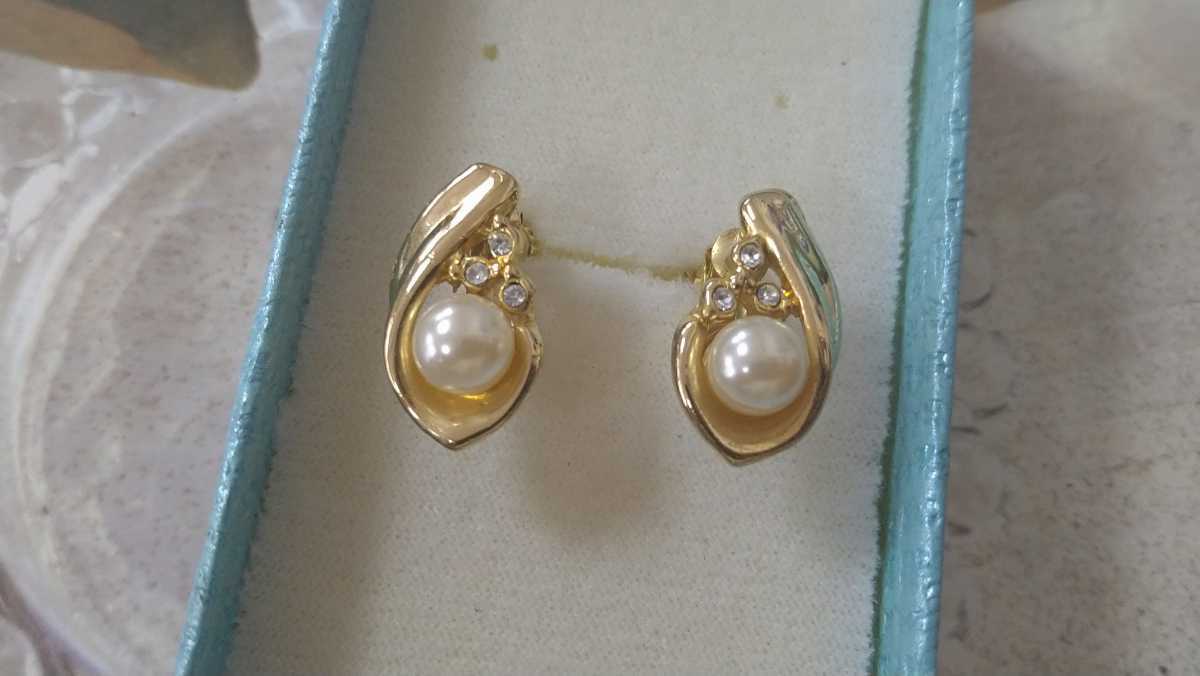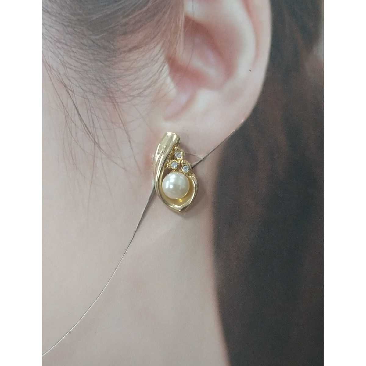 ゴールドカラー×1粒パールビジュー×ラインストーンのイヤリングです