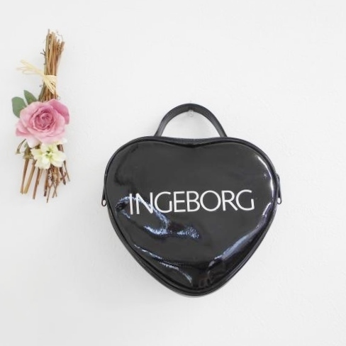 インゲボルグ INGEBORG フォーマル 2次会 お出かけなどにお使い頂けそうなエナメルのハート型の可愛いバッグです。お色は黒・ブラックです。 色んなお洋服に合わせて素敵にどうぞ。