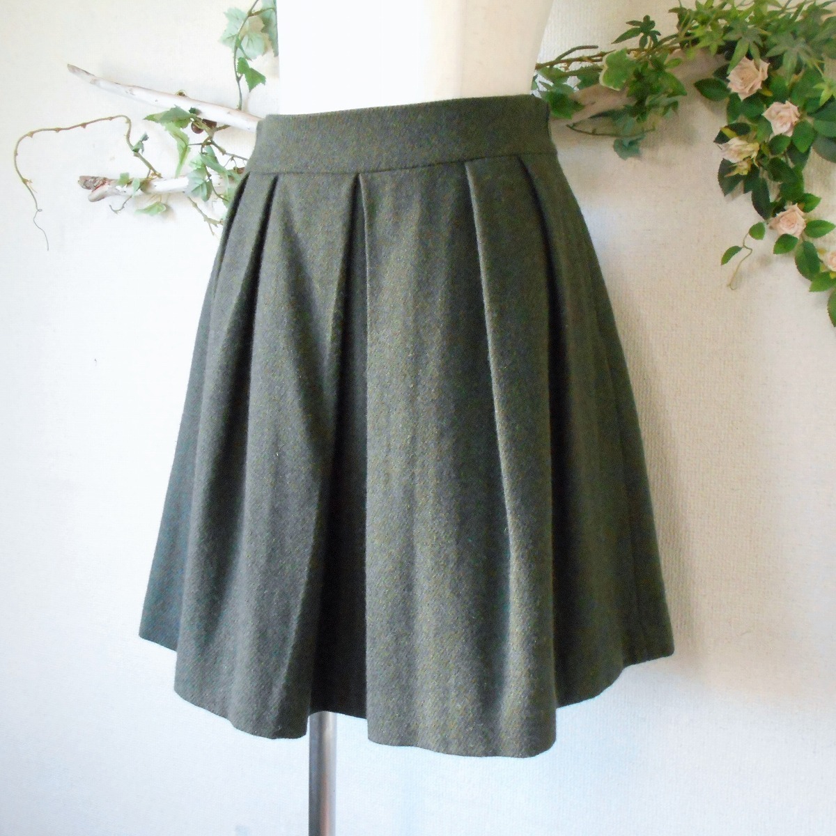 【ポイント】エムドゥのスカートになります。お色は深緑系のカーキで、ウール75%の秋冬向きです。
