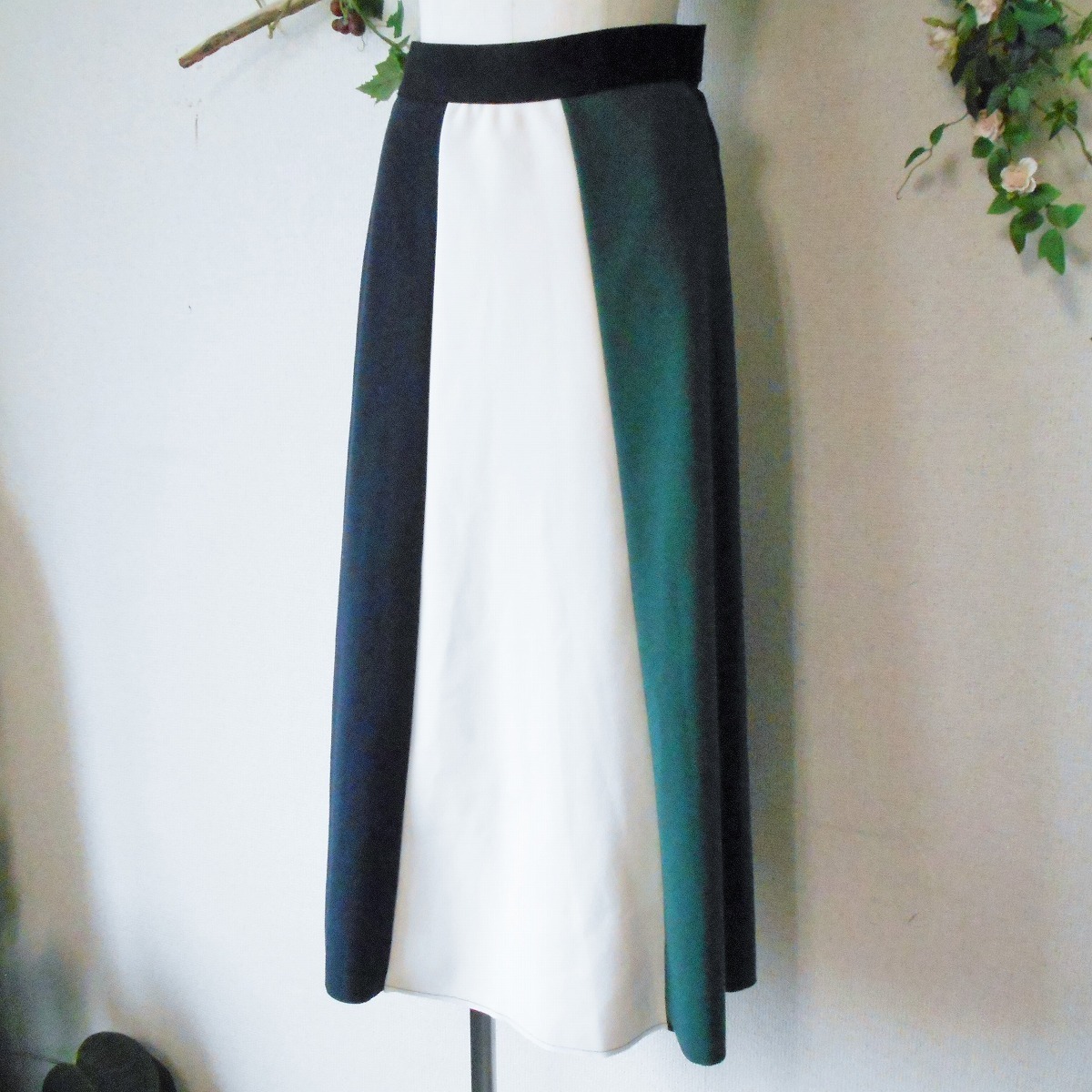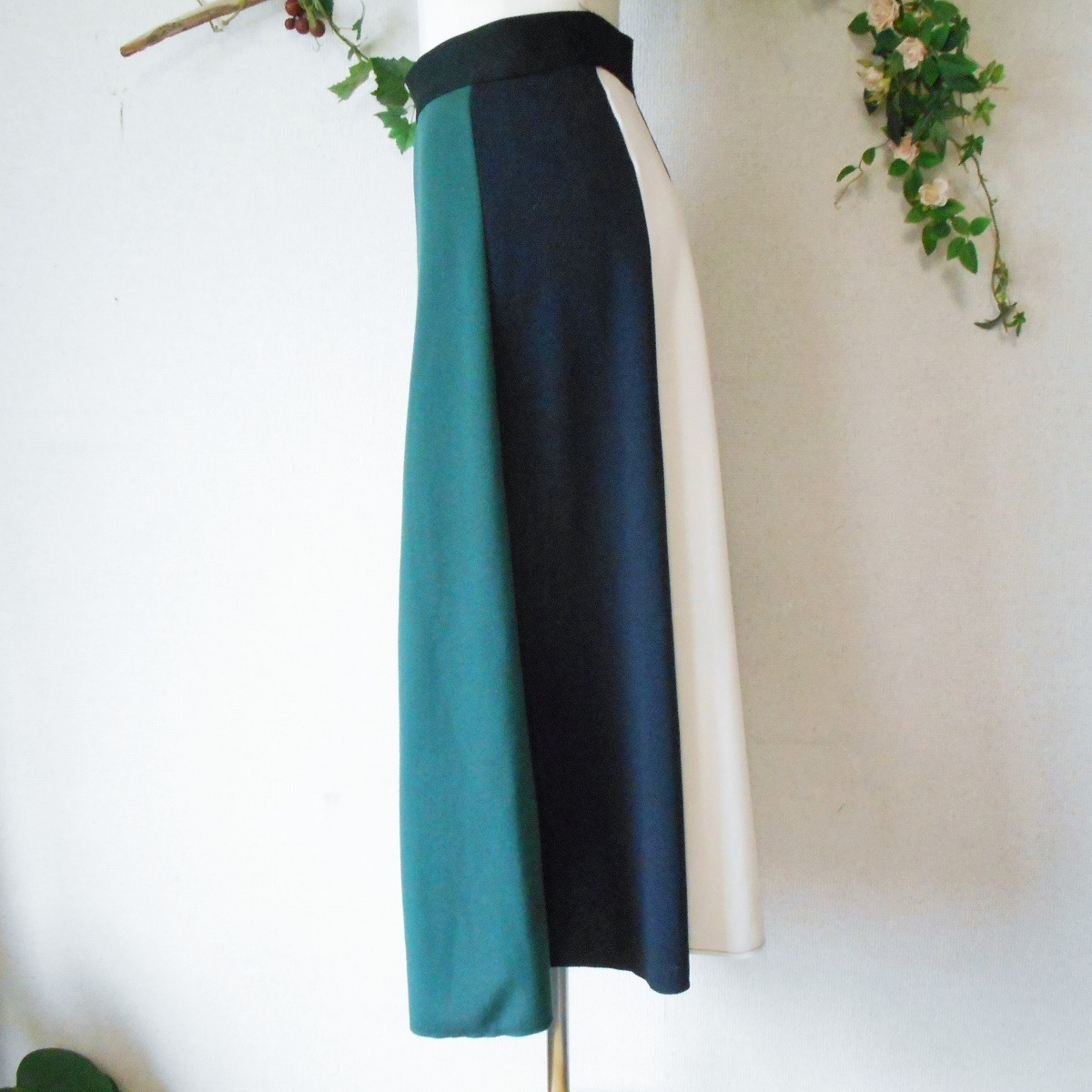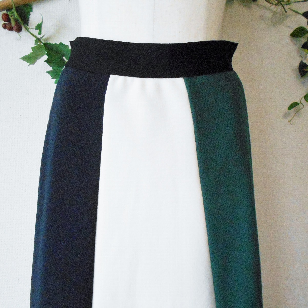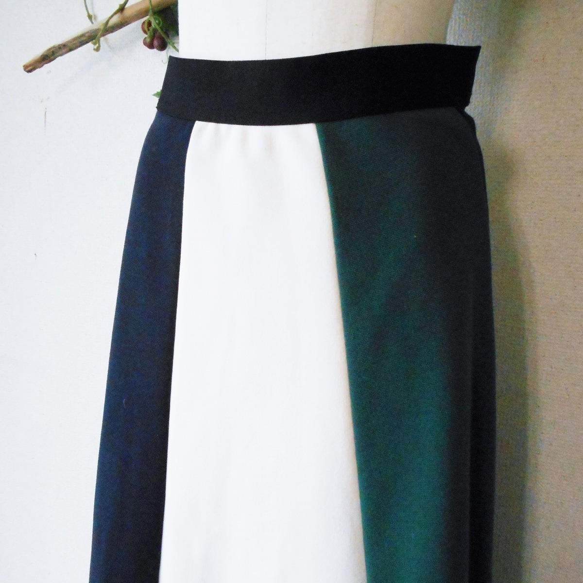 【ポイント】コーラルのスカートになります。お色は白、紺、緑、の3色使用で、縦に切替えになっています。