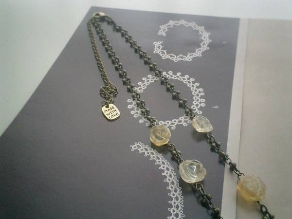 エキセントリック少女・・シリーズです♪秘めた恋・・神秘的な琥珀色のネックレスです♪繊細なシトリンの薔薇は10ミリから13ミリ位の大きさ違いです♪お花のデザインチェーンを合わせて可憐な表情です♪長さは全長55センチ位で調節自由です♪チョーカー風にされてもブレスにされても素敵です♪お揃いのネックレスやブレスレットも出品しています♪♪シンプルで合わせやすいデザインを考えて作りました♪ハンドメイドをご理解いただいてノーリターン、ノークレームでお願いします♪
