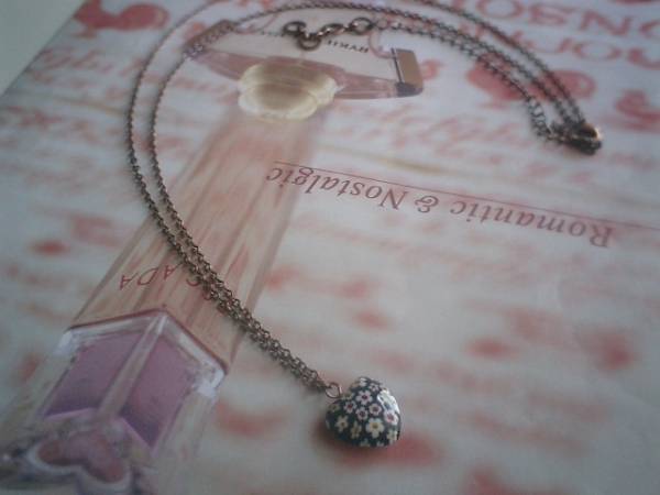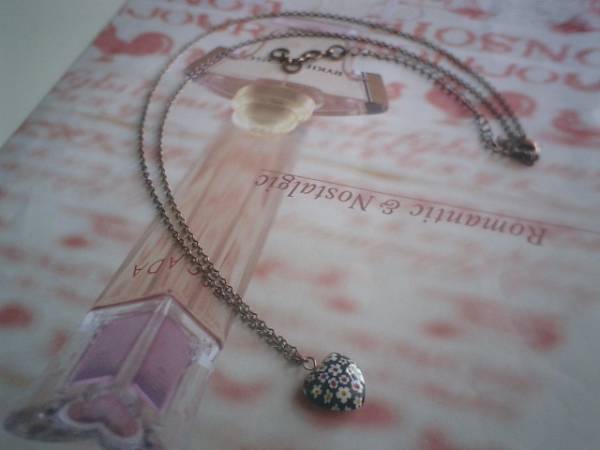 女の子テイスト・・シリーズです♪シックな黒の小花柄・・小花柄のベネチアビーズのネックレスです♪繊細なチェーンに15ミリ位のハートの小花柄のベネチアビーズを合わせて可憐な表情です♪長さは70センチ+アジャスター15センチで最長85センチ位です♪お揃いのブレスレットやイヤリングも出品しています♪シンプルで飽きのこないいつまでも着けられるデザインを考えて作りました!ハンドメイドをご理解頂いてノークレーム、ノーリターンでお願いします