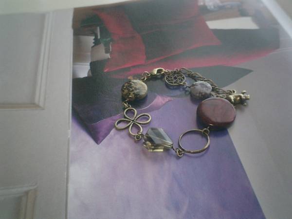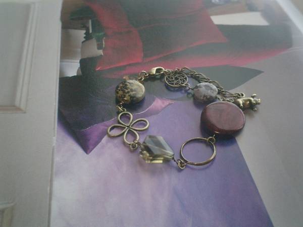 ジャンヌの手仕事・・シリーズです♪セピア色の恋・・シックな大人仕様のブレスレットです♪レモン水晶やアーティストジャスパーなど繊細で個性的な石にデザインチャームを合わせてキュートな表情です♪レモン水晶は15ミリ位のラフカット、アーティストジャスパーは10ミリ、14ミリのコイン、お花のデザインチャームは20ミリ位です♪長さは全長23センチ位で調節自由です♪♪お揃いのネックレスも出品しています♪♪シンプルで飽きのこないいつまでも着けられるデザインを考えて作りました!ハンドメイドをご理解頂いてノークレーム、ノーリターンでお願いします