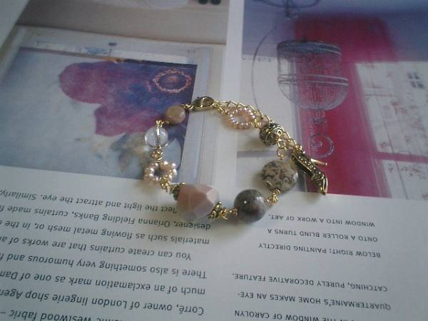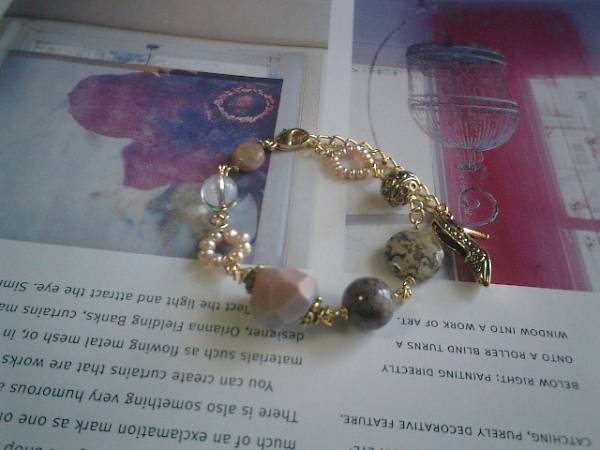 秋色・デッサン・・シリーズです♪ノスタルジック・ピンクを集めたブレスレットです♪ベージュ・ピンクやグレー・ピンク、オレンジ・ピンクやモーヴ・ピンクなど繊細なピンク色を合わせて大人のロマンチックしています♪オレンジ・ムーンストーンは8ミリのコインです♪8ミリの丸玉のルチルクォーツや3ミリ、4ミリの淡水パールのリング、14ミリ×13ミリ位のラフカットのピンクボツワナアゲートに12ミリのコイン、10ミリの丸玉のアーティストジャスパーやメタルチャームを合わせました♪長さは全長23センチ位で調節自由です♪お揃いのネックレスやイヤリングも出品しています♪シンプルで合わせやすいデザインを考えて作りました♪ハンドメイドをご理解いただいてノーリターン、ノークレームでお願いします♪