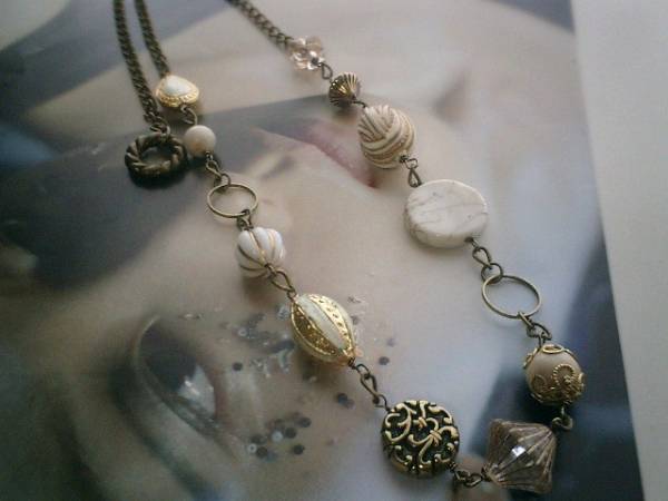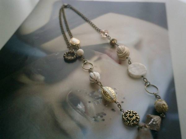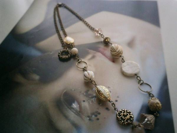仏蘭西映画の恋人・・シリーズです♪ジュリエットの恋・・儚げな表情のネックレスです♪8ミリ、10ミリの丸玉のソープストーンに8ミリから20ミリ位までのチェコビーズやクロワゾネビーズや樹脂ビーズやメタルチャームを合わせてシックに華やかにまとめました♪長さは全長63センチ位で調節自由です♪チョーカー風にされてもブレスにされても可愛いです♪♪お揃いのネックレスやブレスレットも出品しています♪シンプルで長く着けていただけるデザインを考えて作りました♪♪ハンドメイドをご理解頂いてノークレーム、ノーリターンでお願いします。