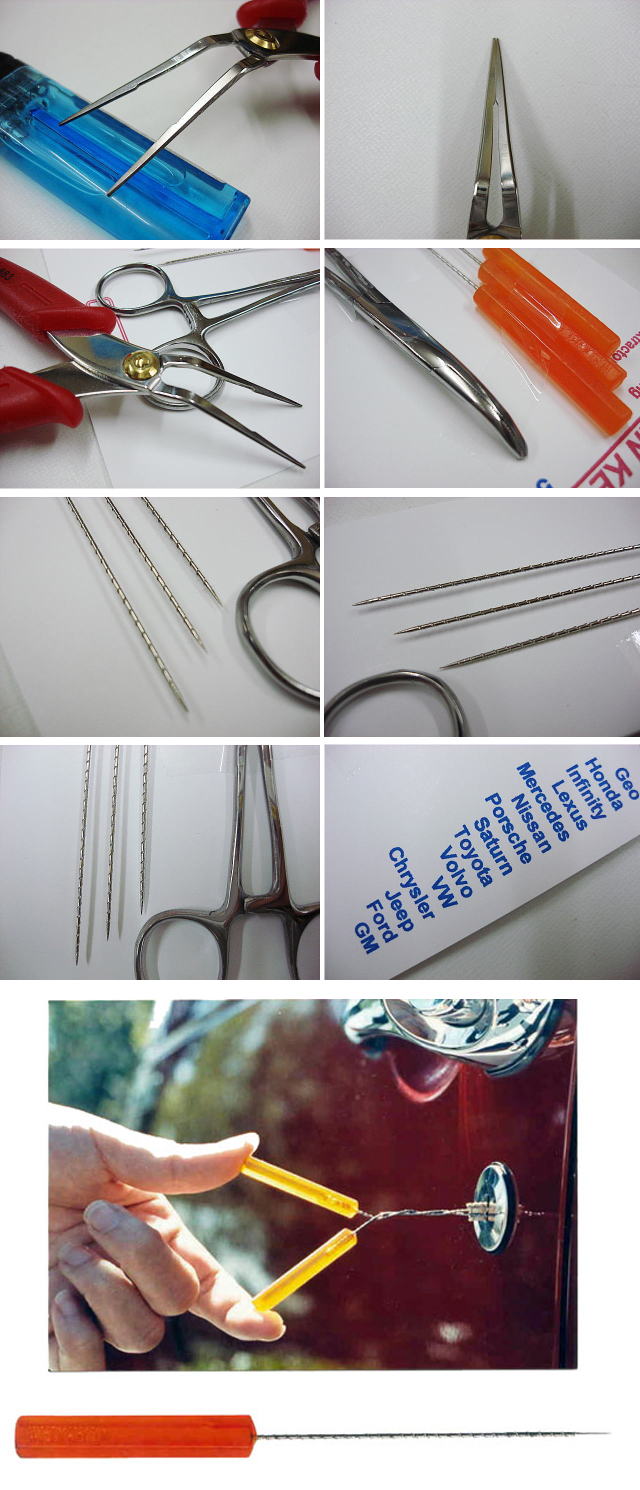 特殊プライヤーと針状のニードルを用い折れたキーを摘出に使用します。