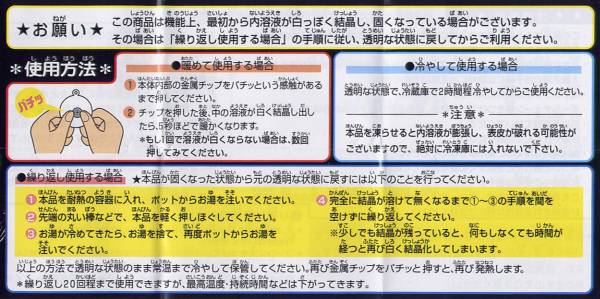 マスコットの中身の金属をパチンと曲げると”アラ不思議”中身が結晶化して”ホッカホッカ”♪