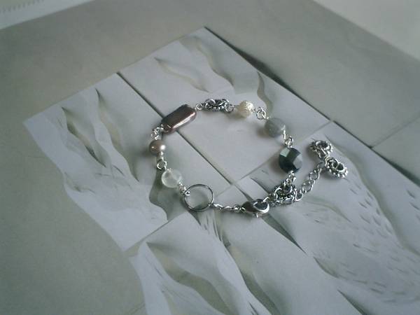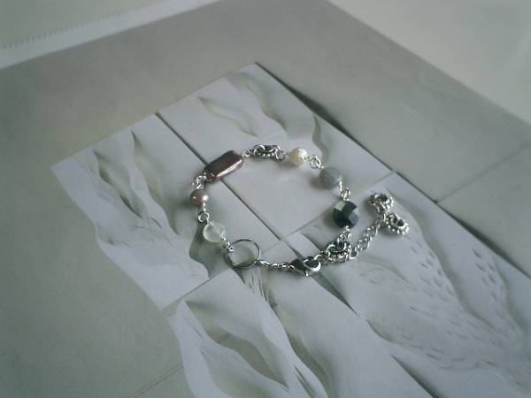 初夏の予感・・シリーズです♪スタイリッシュに恋して・・シックなグレーパープルの淡水パールのブレスレットです♪6ミリから20ミリ位までのバロックやポテトやステック型などデザイン違いの淡水パールに黒蝶貝のカットオーバルやムーンストーンやラブラドライトのコインやデザインチャームを合わせて可憐にロマンチックしています♪♪長さは全長22センチ位で調節自由です♪お揃いのネックレスも出品しています♪♪シンプルで飽きのこないいつまでも着けられるデザインを考えて作りました!ハンドメイドをご理解頂いてノークレーム、ノーリターンでお願いします