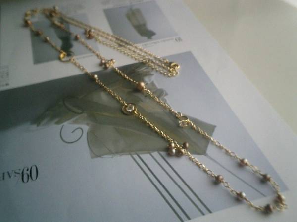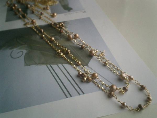 ジゼルの季節・・シリーズです♪パールの物語・・シックな淡水パールのネックレス2本セットです♪右端のネックレスはシャンパンゴールドの淡水パールの4ミリから8ミリ位までのポテトやバロックなど大きさ違い、デザイン違いです♪5ミリや6ミリのラウンドのジルコニアやジルコニアリングを合わせてさりげなく大人のロマンチックしています♪長さは全長102センチ位で調節自由です♪長いので2連にされても可愛いです♪真ん中のネックレスは同じ4ミリから8ミリ位までの淡水パールです♪長さは全長94センチ位で調節自由です♪こちらも2連にされても素敵です♪それぞれ単品でも出品しています♪お揃いのブレスレットやピアスも出品しています♪シンプルで長く着けていただけるデザインを考えて作りました♪♪ハンドメイドをご理解頂いてノークレーム、ノーリターンでお願いします。