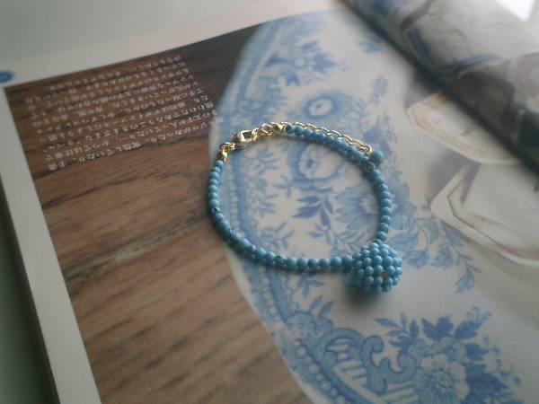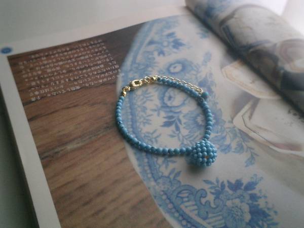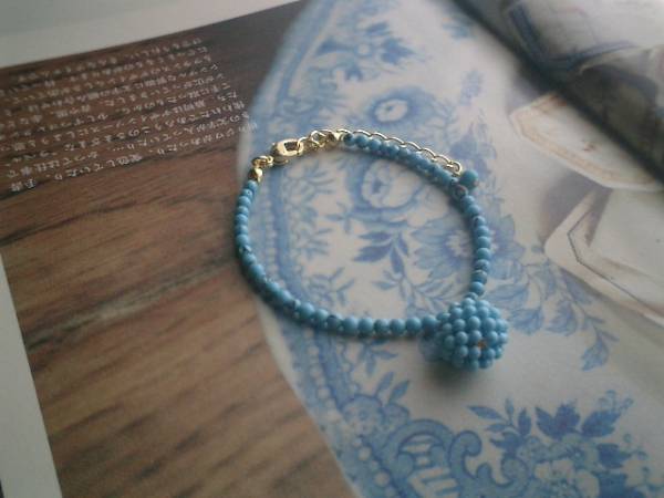 ジゼルの季節・・シリーズです♪ナチュラルデニムの香り・・キュートなトルコ石のブレスレットです♪繊細な3ミリの丸玉のターコイズにトップはドイツ製のトルコ石(練り)の12ミリ位の編みボールを合わせてキュートな表情です♪長さは16センチ+アジャスター6センチで最長22センチ位です♪♪お揃いのネックレスやピアスも出品しています♪シンプルで飽きのこないいつまでも着けられるデザインを考えて作りました♪ハンドメイドをご理解頂いてノークレーム、ノーリターンでお願いします