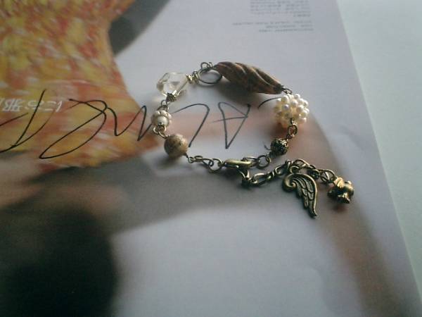 私的コレクションシリーズです♪アートな気分・シトリンとピカソジャスパーのブレスレットです♪個性的な表情のピカソジャスパーは36×10ミリのマーキスカットや8ミリの丸玉です♪繊細で神秘的なシトリンは13×11ミリ位のラフカットです♪透かし玉やチェコビーズや淡水パールボールなどアート仕様の石を集めてシックにロマンチックしています♪長さは全長23センチ位で調節自由です♪お揃いのネックレスも出品しています♪♪シンプルで飽きのこないいつまでも着けられるデザインを考えて作りました!ハンドメイドをご理解頂いてノークレーム、ノーリターンでお願いします