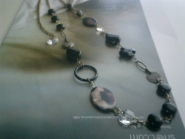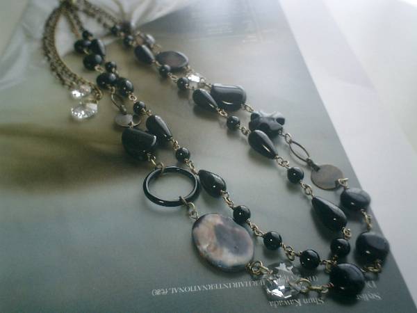 ミニシアターの余韻・・シリーズです♪赤い靴の少女・・シックなオニキスとスワロのネックレス2本セットです♪大人仕様のデザインです♪オニキスは10ミリのコイン、15ミリのクロス、22ミリのリング、13×18ミリのオーバルなどデザイン違い、大きさ違いです♪豹柄の25×18ミリ、15×20ミリのフラットオーバルのシェルやスワロのクリスタルのヘキサゴンやスモーキークォーツのオーバル、デザインチェーンなどを合わせてキュートモダンな表情です♪長さは70センチ位で調節自由です♪オニキスのネックレスは6ミリの丸玉、18×8ミリのドロップのオニキスにアンティークチェーンを合わせて可憐な表情です♪長さは全長65センチ位で調節自由です♪チョーカー風にされてもブレスにされても素敵です♪♪同じデザインの長いタイプや単品やブレスレットやピアスも出品しています♪♪シンプルで飽きのこないいつまでも着けられるデザインを考えて作りました!ハンドメイドをご理解頂いてノークレーム、ノーリターンでお願いします