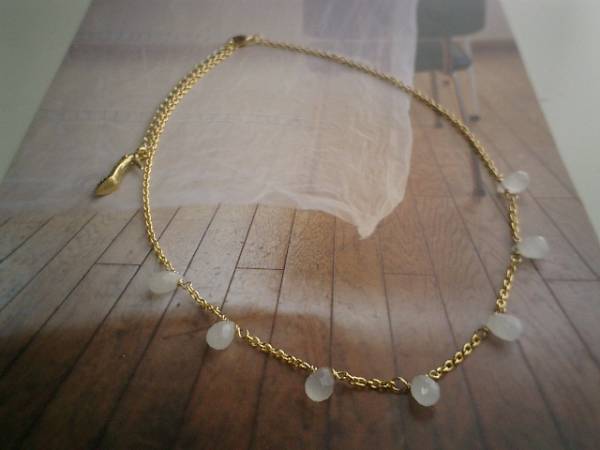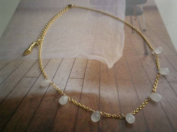ロゼッタの贈り物・・シリーズです♪やさしいホワイト・ジェイドの可憐なネックレスです♪♪9×6ミリ位のホワイトジェイドのドロップカットのネックレスは43センチ+アジャスター12センチで全長55センチ位です♪チョーカー風にされても素敵です♪♪お揃いのネックレスやブレスレットも出品しています♪シンプルで飽きのこないいつまでも着けられるデザインを考えて作りました!ハンドメイドをご理解頂いてノークレーム、ノーリターンでお願いします