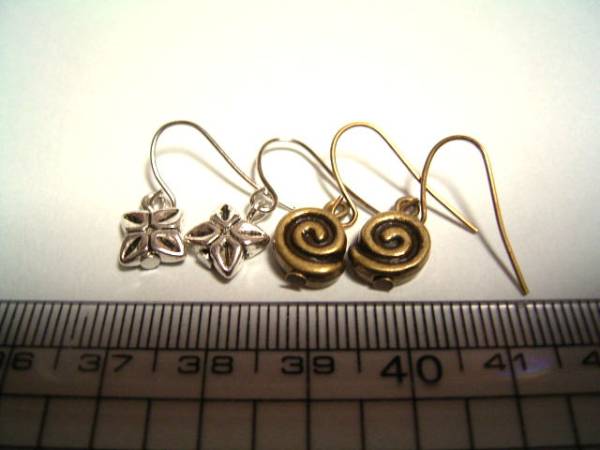 ピアス金具はフック シルバーカラーと金古美カラー メッキです。